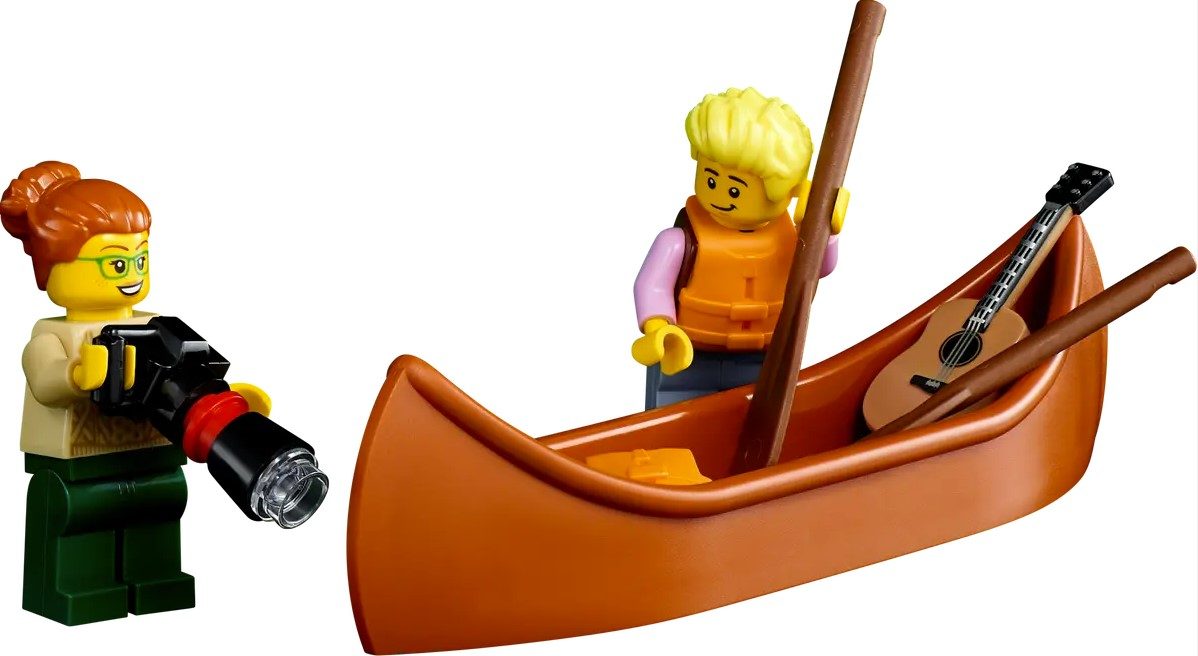 - 3 arbres constructibles et un canoë – placez les arbres individuellement autour de la maison ou reliez-les pour créer une petite île que les minifigures peuvent atteindre avec le canoë